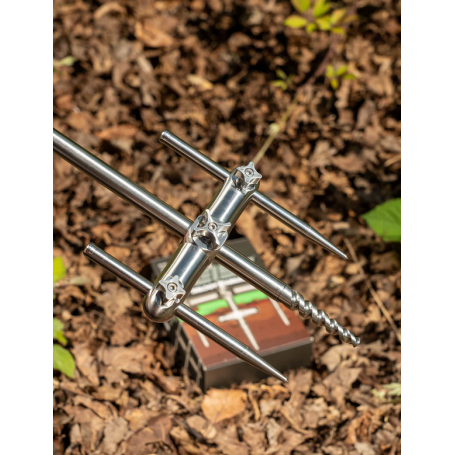 The Heist Troilogy Stabiliser has been developed to work in tandem with the Heist Bankstick range, giving you the ability to create a rock solid stable set-up for those that are serious about their Angling! With the Dual Stainless moving spikes, you can penetrate the earth on both sides of your Banksticks for optimum stability.